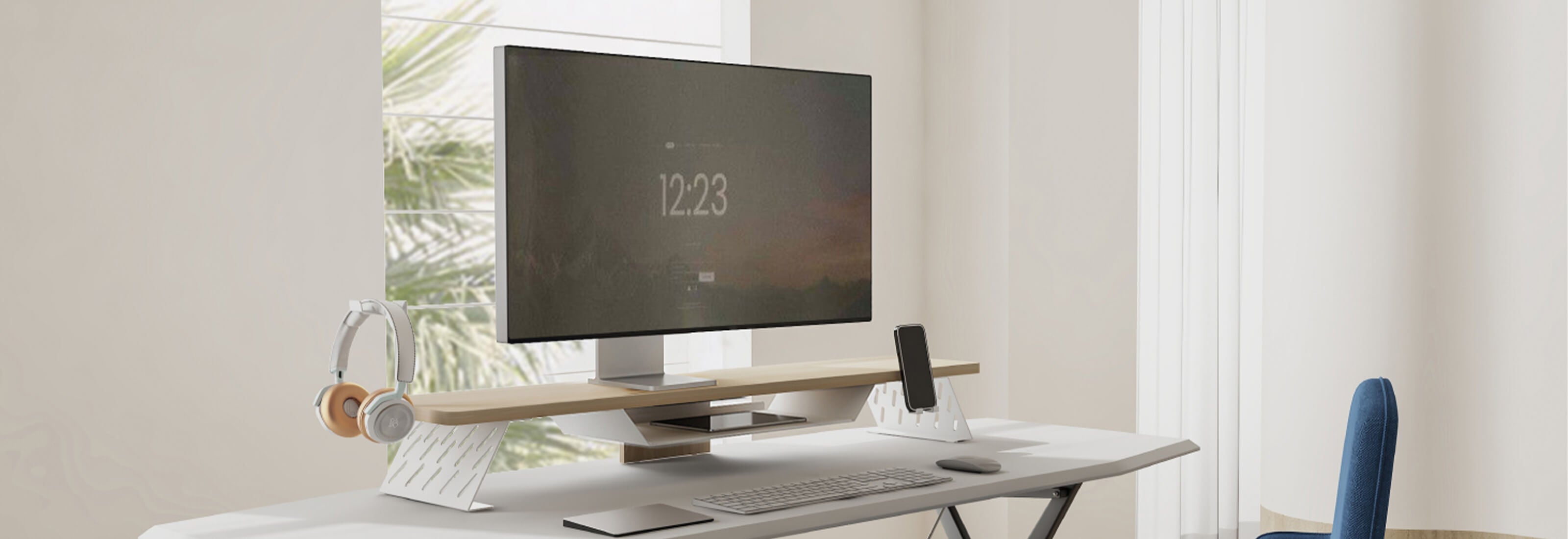 To maintain the FENGE Monitor Stand‘s appearance and durability, wipe it with a soft, slightly damp cloth and dry it right after. Avoid chemical cleaners or abrasives, and clean spills promptly to prevent damage.