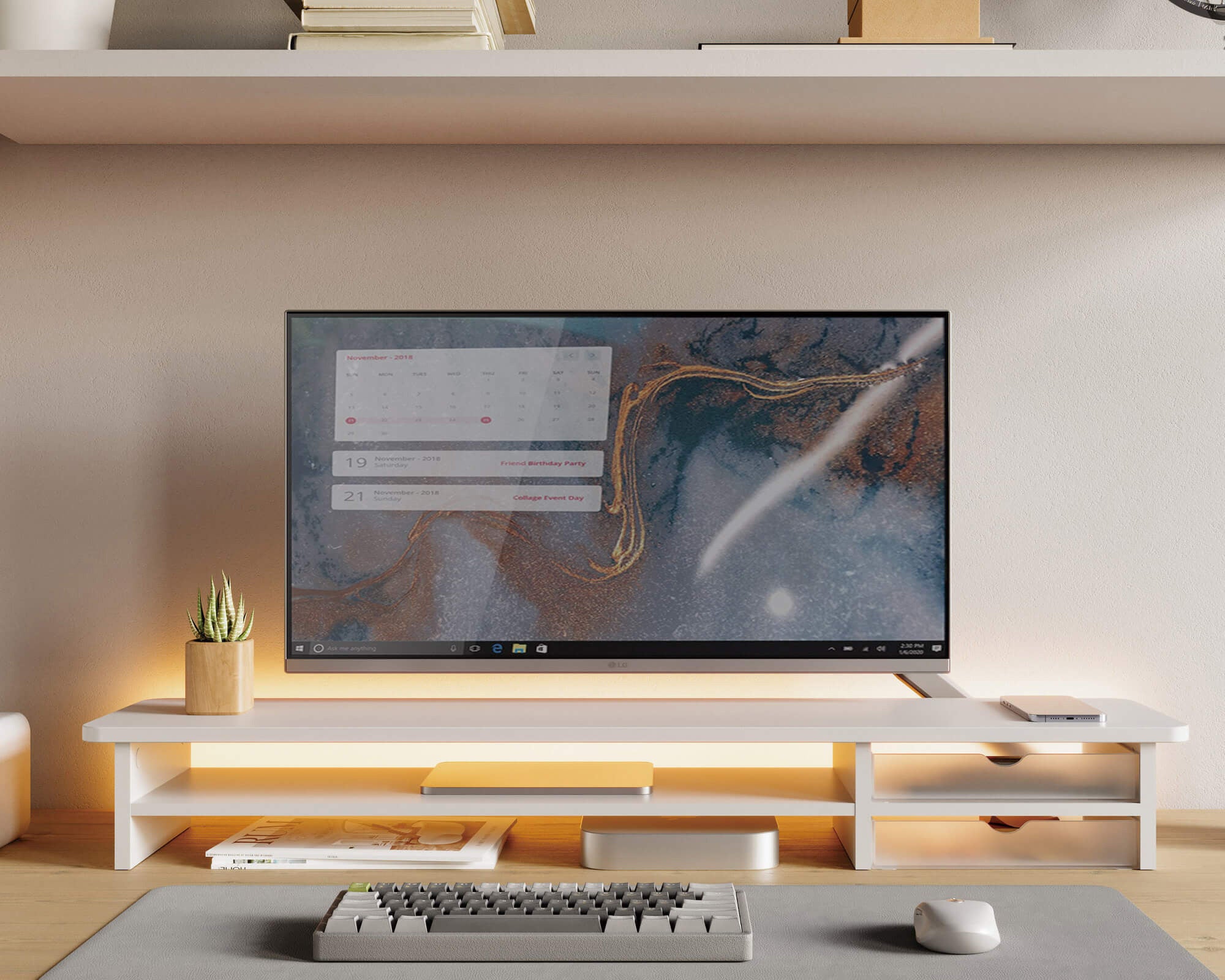 The desk stand lifts your monitor by 5.5 inches, positioning your screen at an ideal eye level to reduce neck and spine strain during long hours of work.